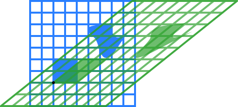 파란 그림을 검은 점을 원점으로 하여 전단 변환하였을 때