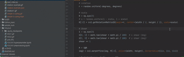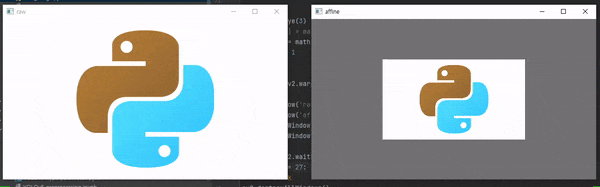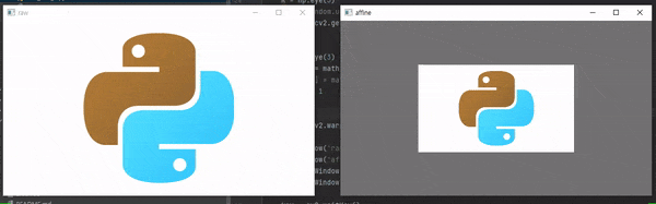 한가지 눈여겨 볼 점은 위에 위키백과의 사진과 반대로 움직이는 것처럼 보이실 텐데요, cv2라이브러리는 축을 움직입니다.원점을 중앙(width/2, height/2)으로 생각한 뒤에 축을 움직인다고 상상해보세요.머리속에 그려지는 상상과 gif가 일치하나요?